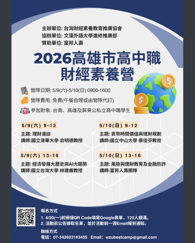 轉知文藻學校財團法人文藻外語大學辦理「2026高雄市高中職財經素養營隊」