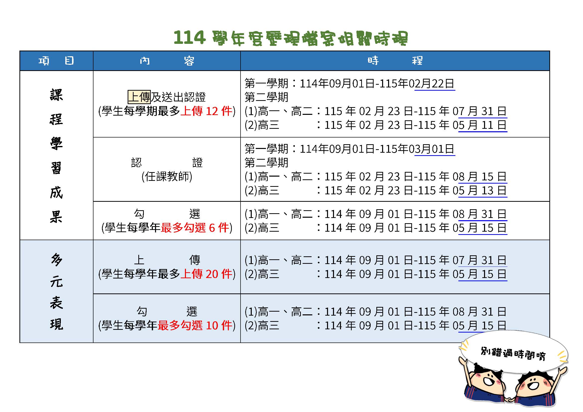 (學習歷程)114學年度學習歷程時程(學習成果、多元表現)