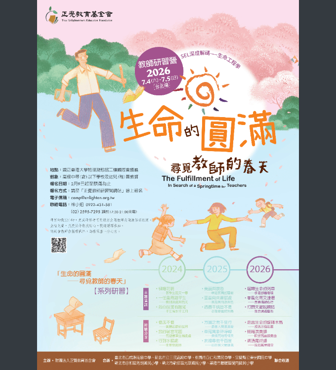轉知:財團法人正覺教育基金會辦理生命教育教師研習活動「生命的圓滿--尋覓教師的春天」