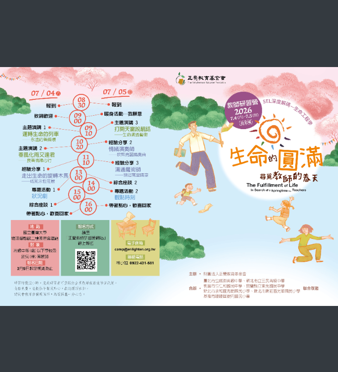 (四)報名:115年3月9日起至額滿為止,請上正覺教師研習營網站報名。(https://www.teachercamp.enlighten.org.tw)