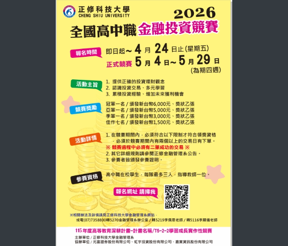 轉知~正修金融系2026全國高中職金融投資競賽